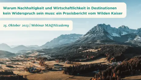 Webinar "Warum Nachhaltigkeit und Wirtschaftlichkeit in Destinationen kein Widerspruch sein muss" Kristin Koch | September 2023 Neuer Impuls der Webinar-Reihe MAQNIcademy am Mittwoch, dem 25.10.23.