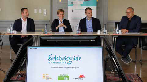 Ziel des im Göppinger Rathaus vorgestellten Erlebnis-Guides der Firma MAQNIFY ist es, Reisende zu animieren, sich die Sehenswürdigkeiten auf der Reiseroute anzuschauen und dafür vielleicht sogar einen Umweg in Kauf zu nehmen. „Auch wer sozusagen nur auf der Durchfahrt ist, soll wissen, welche Reize und Besonderheiten unsere Heimat zu bieten hat“ lobt Göppingens Erste Bürgermeisterin Almut Cobet die neue App. „Für Wohnmobilisten sind wir beispielsweise mit unserem neuen Natur-Stellplatz am Aasrücken oder den Stellplätzen an der EWS-Arena immer einen Abstecher wert.“ Der badenwürttembergische Tourismuschef Andreas Braun zeigte sich regelrecht begeistert vom neuen Angebot, weiß man bisher doch oft nicht, was sich hinter den Tafeln tatsächlich verbirgt. Deshalb sieht Louis Schumann, Geschäftsführer des Schwäbische Alb Tourismusverbandes, in der mit dem Unternehmen abgeschlossenen Kooperation eine innovative Art und Weise ein „analog“ vorhandenes Angebot mit digitalen Möglichkeiten deutlich aufzuwerten. Die Stadt Göppingen hat den Nutzen der App für sich schnell erkannt und ist als Premiumpartner als einer der ersten im Verbandsgebiet Schwäbische Alb in das Projekt eingestiegen. „Wir haben dabei die ‚Patenschaft‘ für das Stauferland-Schild an der A8 bei Aichelberg übernommen und entsprechende touristische Informationen für die neue App zur Verfügung gestellt“, erläuterte Lisa Herr, Leiterin des Referats Tourismus der Stadt Göppingen, die Zusammenarbeit.