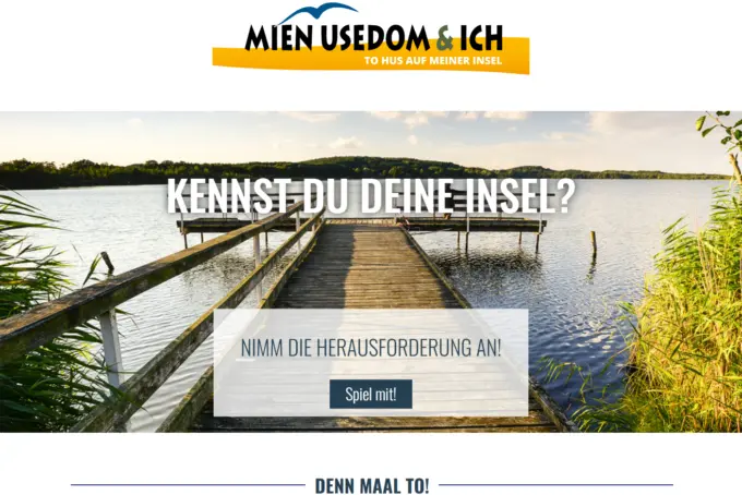 Mien Usedom und Ich wählt einen neuen, einzigartigen Ansatz. Es ist ein eLearning von Einwohnern der Insel Usedom für diese selbst. Ziel ist es zum einen die Tourismusakzeptanz zu steigern, aber auch den Usedomern die Vielfalt, Schönheit und die Besonderheiten der Insel bewusst zu machen.
