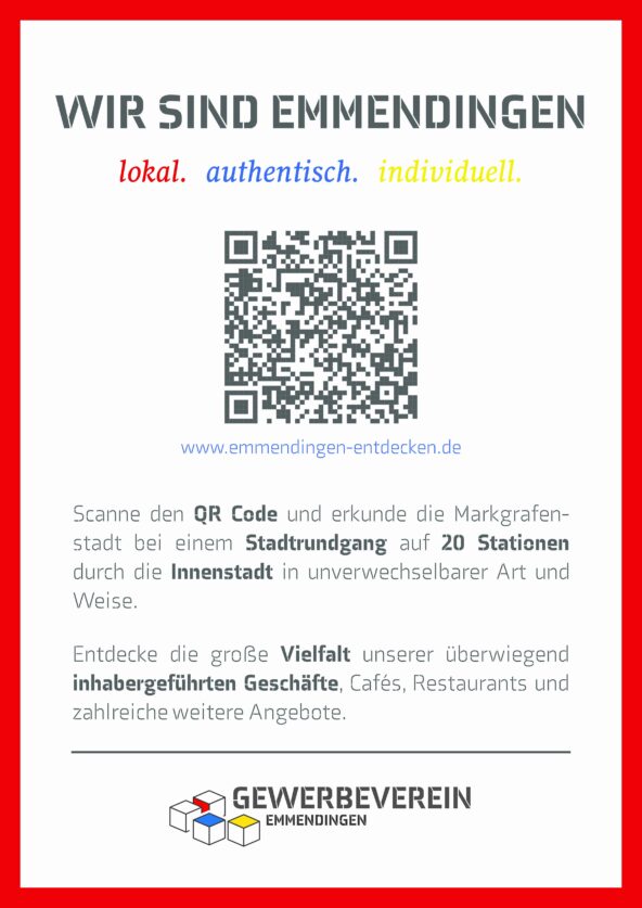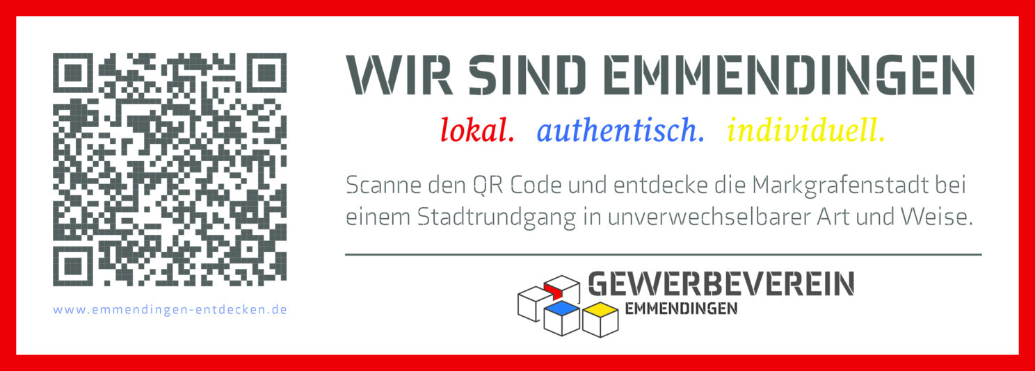 Zur Aufwertung des touristischen Angebots und Steigerung der digitalen Sichtbarkeit der Mitgliedsbetriebe, hat MAQNIFY in Zusammenarbeit mit dem Gewerbeverein Emmendingen den digitalen Rundgang durch die Stadt Emmendingen konzipiert. Zudem wurde MAQNIFY mit passenden Werbematerialien beauftragt.