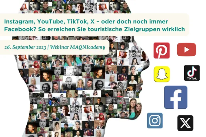 MAQNIFY bietet mit der Webinar-Reihe „MAQNIcademy – Wissen kostenlos, aber nicht umsonst“ den nächsten Impuls zum Thema „Instagram, YouTube, TikTok, X – oder doch immer noch Facebook? So erreichen Sie touristische Zielgruppen wirklich“ an.